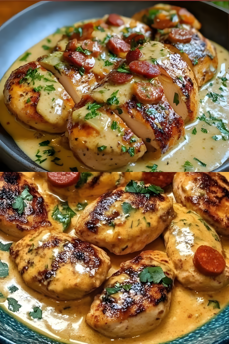 Kipreepjes in romige chorizosaus combineren de malsheid van kip met de kruidige smaak van chorizo en de zachtheid van een rijke roomsaus.