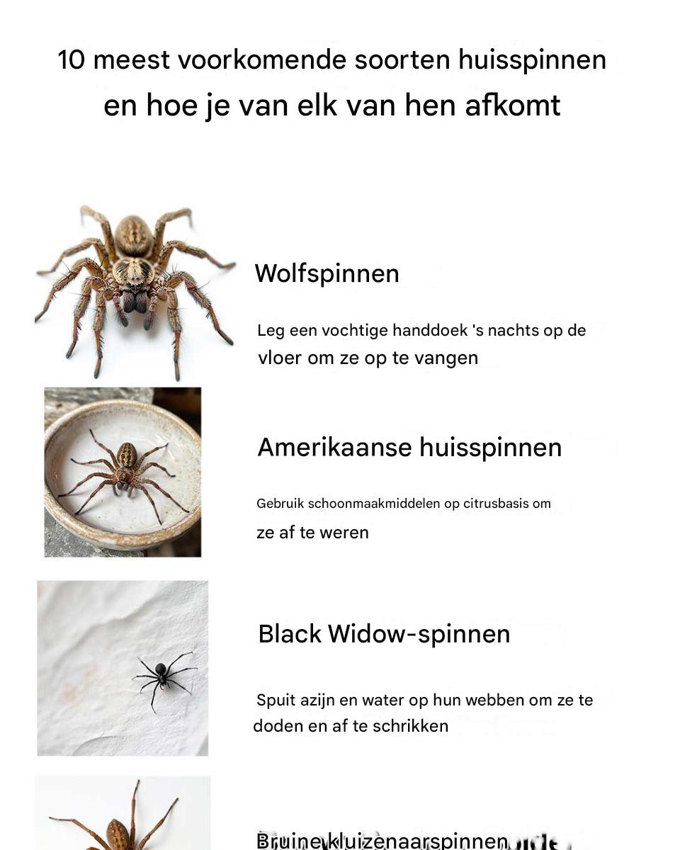 Huisspinnen zijn een veelvoorkomend verschijnsel in veel huizen, vaak te vinden in hoeken, kelders en zolders. Hoewel de meeste ongevaarlijk zijn, kan hun aanwezigheid voor veel mensen verontrustend zijn. Inzicht in de soorten spinnen die vaak in huizen voorkomen, kan helpen bij het beheersen van hun populaties en het verkleinen van de kans op ontmoetingen. Dit artikel onderzoekt tien veelvoorkomende huisspinnen, hun kenmerken en effectieve methoden voor verwijdering.