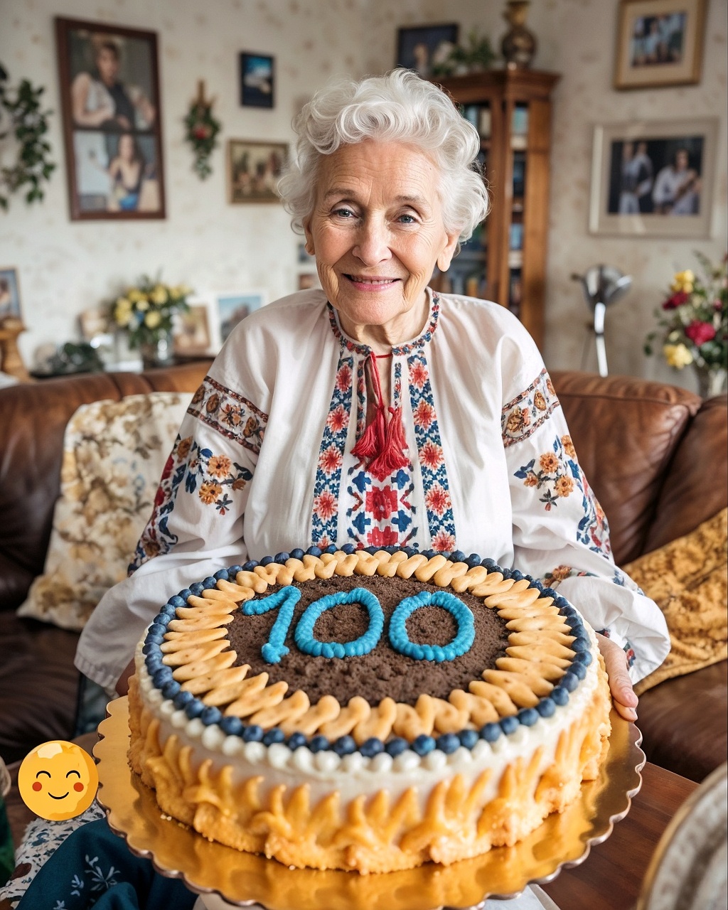 Blauwe schrijfgel of glazuur (voor het getal “100”)