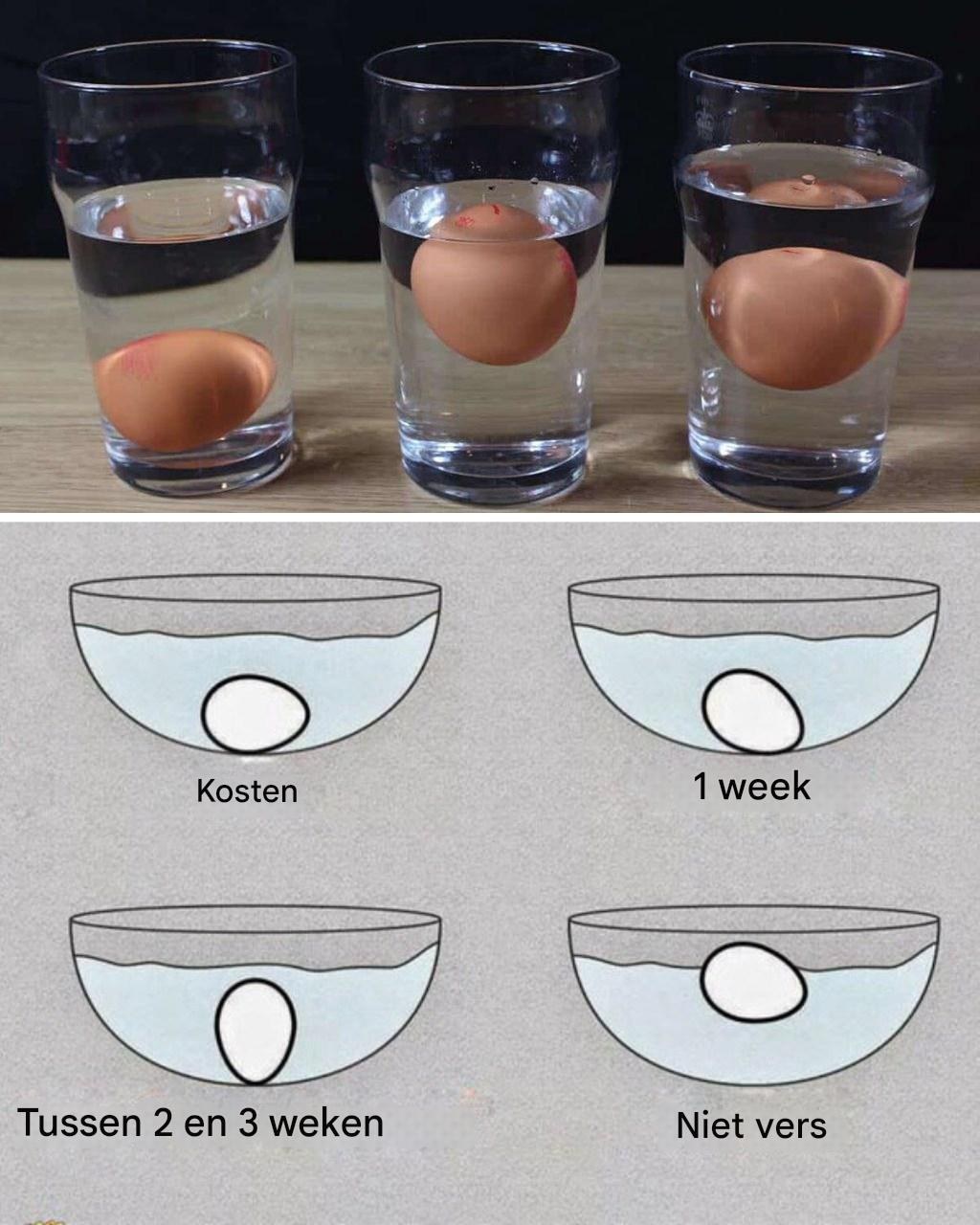 De belangrijkste reden voor deze verspilling is dat 77% van de Britten moeite heeft om te bepalen of een ei na de houdbaarheidsdatum nog vers is. Wil je een brunch maken, maar weet je niet meer hoe lang je eieren in de koelkast hebben gelegen? Geen paniek. Er zijn manieren om te bepalen of ze nog eetbaar zijn: