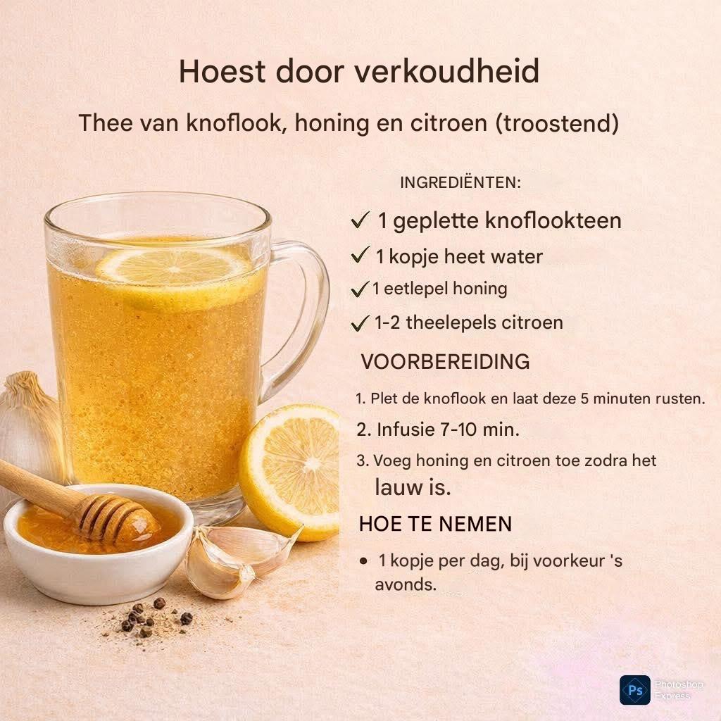 Aanbeveling : Drink 1 kopje per dag. Kan worden gecombineerd met honing en citroen.