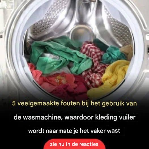 Dit zorgt er niet alleen voor dat de kleding vreselijk gaat ruiken, maar ook dat er een onaangename geur in de wasmachine ontstaat . Haal de kleding daarom na het wassen direct uit de wasmachine om te drogen; laat de kleding niet te lang in de wasmachine liggen.