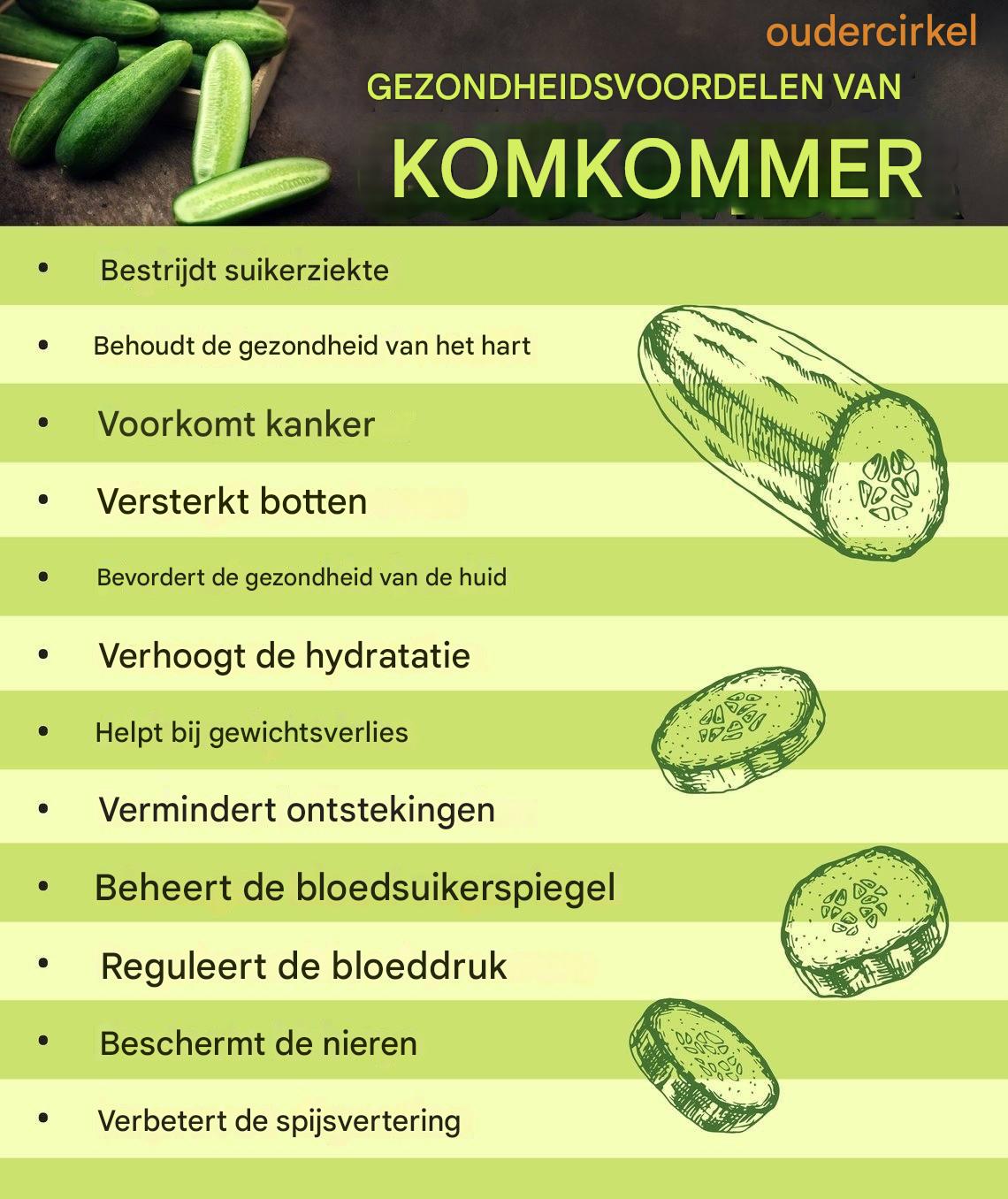 In dit artikel bespreken we de zeven belangrijkste gezondheidsvoordelen van komkommers en leggen we uit waarom het de moeite waard is om ze in uw dagelijkse voeding op te nemen.