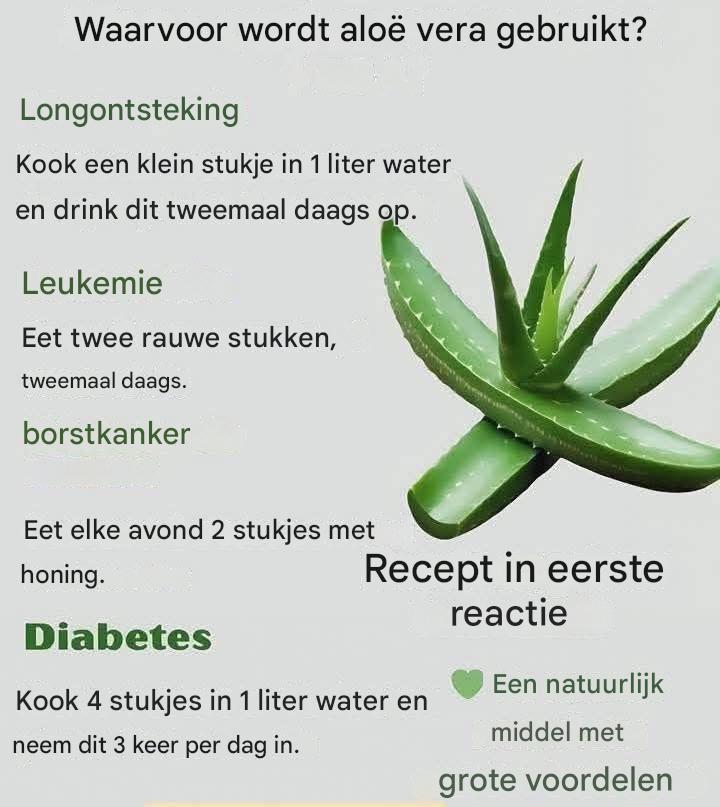 - Ontgiftende drank : Matige consumptie van aloë vera-sap reinigt het spijsverteringsstelsel en bevordert de afvoer van gifstoffen.