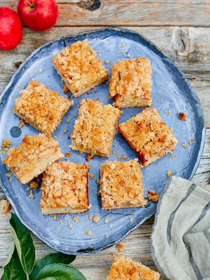 De combinatie van kaneel, kardemom en appels zorgt voor een warme geur die zich tijdens het bakken door de keuken verspreidt. De haverkruimel maakt het geheel compleet: licht knapperig, boterachtig en ideaal als tegenhanger van de zachte cake. Of je het nu serveert bij de koffie, op een feestelijke tafel of als dessert met een toefje vanille, deze appelblokjes passen werkelijk overal bij.