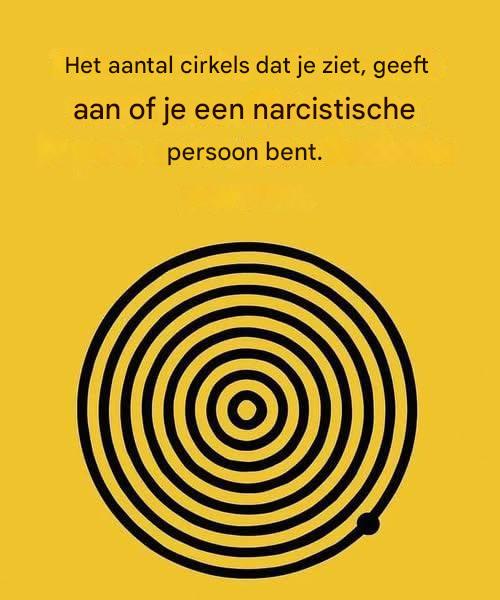 In de wereld van visuele tests bevat elke afbeelding een verborgen boodschap over onze persoonlijkheid. De afbeelding die we vandaag presenteren, heeft veel ophef veroorzaakt op sociale media: een reeks concentrische cirkels met een intrigerende vraag aan het begin: « Het aantal cirkels dat je ziet, vertelt je of je een narcist bent. »