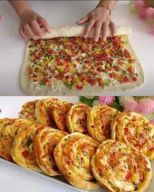 Bladerdeegbroodjes met groenten en kaas, perfect voor een aperitief of een gastronomische snack.