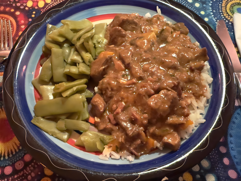 ½ fles rode wijn (Bourgogne of andere volle wijn)