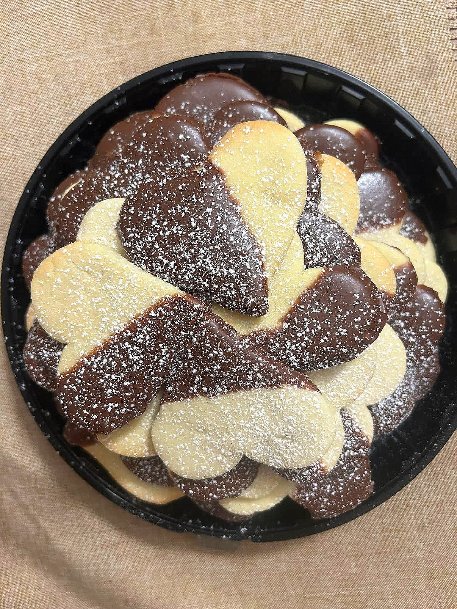 Deze heerlijke koekjes, gemaakt van zanddeeg en gedoopt in chocolade, zijn perfect voor elke gelegenheid. Ze zijn knapperig, smaakvol en kunnen naar wens worden versierd. Ideaal om te serveren bij een kopje thee, koffie of als een mooi cadeau.