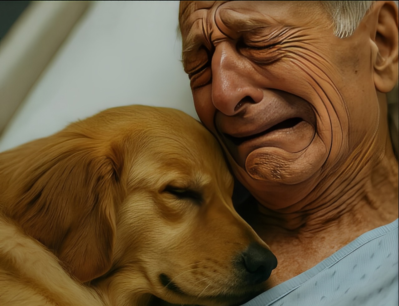 Hij huilde, streelde de hond en kuste hem op zijn hoofd. En Richie jankte zachtjes, ook hij zei: « Ik ben hier. Ik ben bij je. Tot het einde. »
