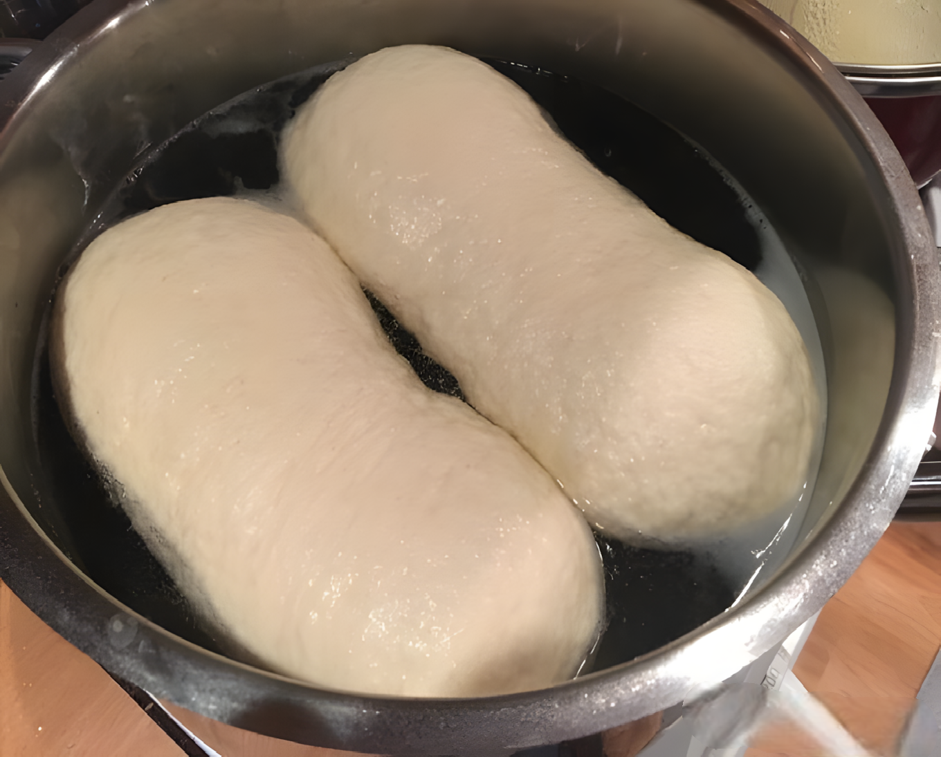 2. Verdeel het deeg na het rijzen in 4 gelijke delen, vorm er dumplings van en laat ze op het werkblad nog 20 minuten rijzen.