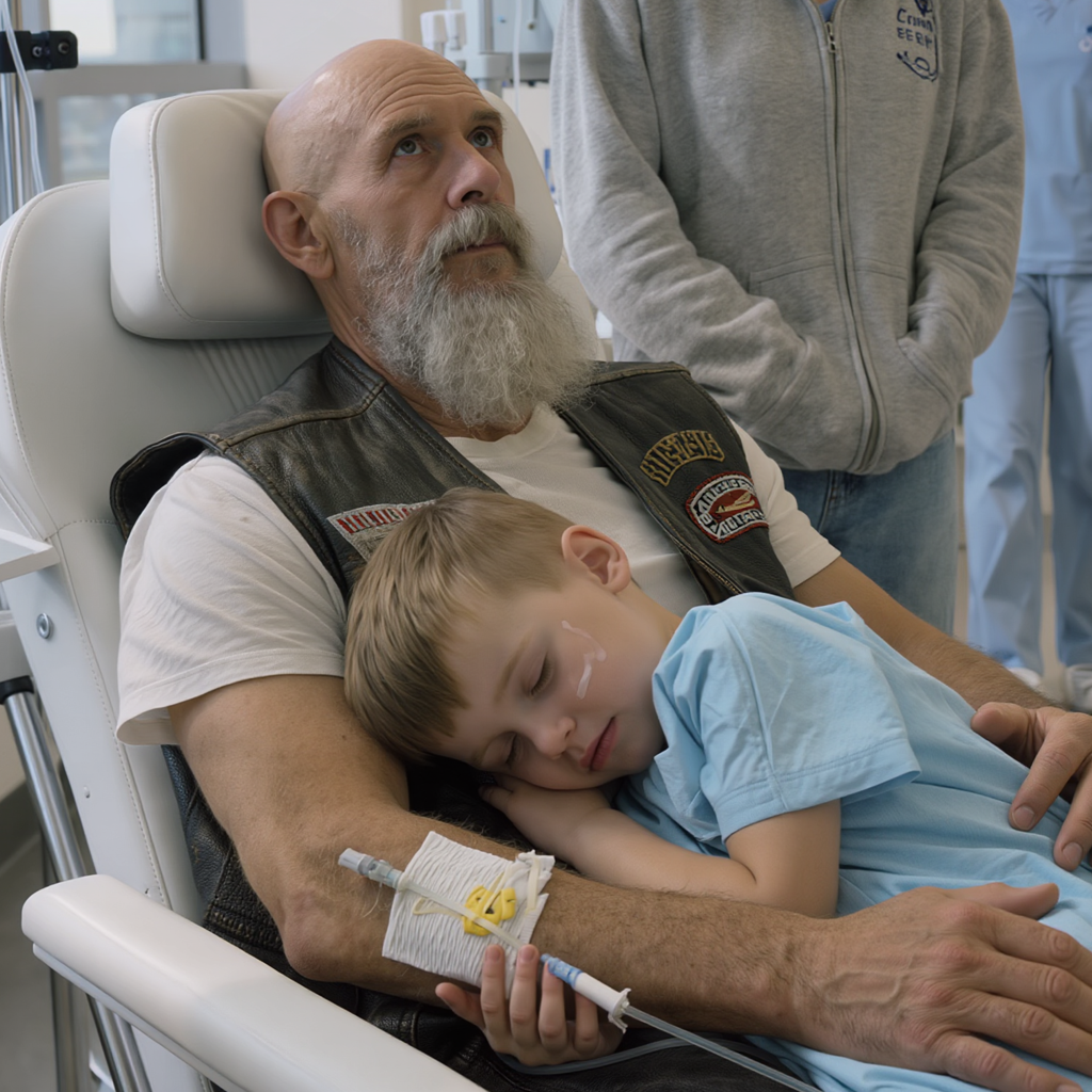 Het was een donderdag die eruit had moeten zien als elke andere behandeldag. Machines zoemden, verpleegkundigen bewogen zich met geoefende gratie en de stille moed van patiënten vulde de gangen. De Iron Wolves – een ouderwetse rijclub met meer hart dan chroom – wisselden elkaar af en zaten om de beurt bij hun broer, Dale “Ironside” Murphy, achtenzestig jaar oud. Hij droeg zijn leren vest over de open rug van een ziekenhuisjas, zijn baard was netjes bijgeknipt en zijn ogen straalden de koppige waardigheid uit van een man die zijn hele leven beloftes had nagekomen.