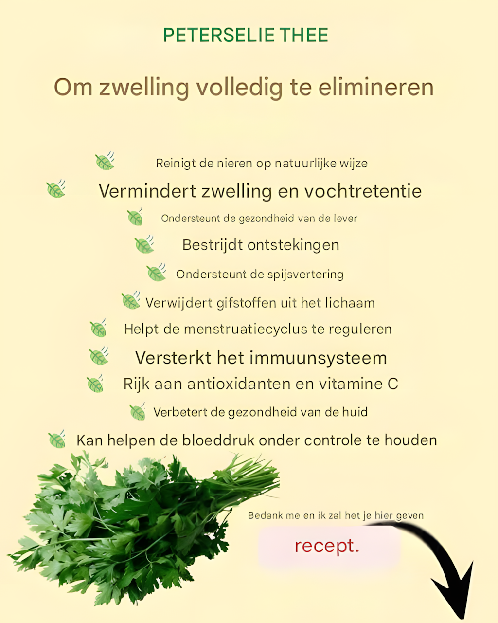 Peterselie is meer dan alleen een culinaire toevoeging – het is een medicinaal kruid met buitengewone gezondheidsbevorderende eigenschappen. Rijk aan vitamine A, C en K, mineralen zoals ijzer en kalium, en antioxidanten, is deze plant een natuurlijke bondgenoot voor het ontgiften van het lichaam, het versterken van het immuunsysteem en het verbeteren van de spijsvertering. Hieronder bespreken we de belangrijkste voordelen, een onfeilbaar recept voor peterseliethee en tips om het potentieel ervan ten volle te benutten.
