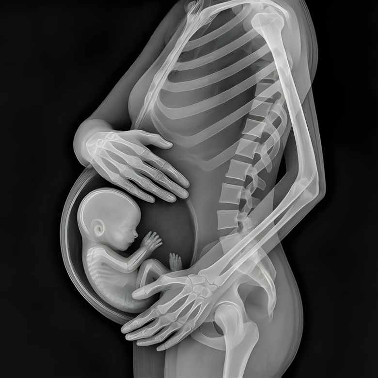 Weinig beelden vangen de realiteit van het moederschap zo indringend als de röntgenfoto van een zwangere vrouw: een fragiel skelet dat de kleine vorm van een baby omarmt, handen zachtjes om de zwellende buik gewikkeld in een gebaar van liefde en bescherming. Het is niet zomaar een medisch beeld – het is een symbool van opoffering, van kracht, van de verborgen strijd die elke moeder moet leveren.
