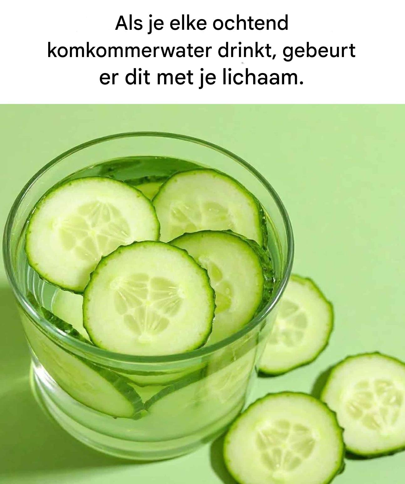 Wist je dat komkommerwater, ‘s ochtends op een lege maag gedronken, uitzonderlijke gezondheidsvoordelen biedt? Deze groente is niet alleen culinair te gebruiken, maar hydrateert en voedt het lichaam ook optimaal. Een ochtendgewoonte met talloze voordelen om de dag goed te beginnen.