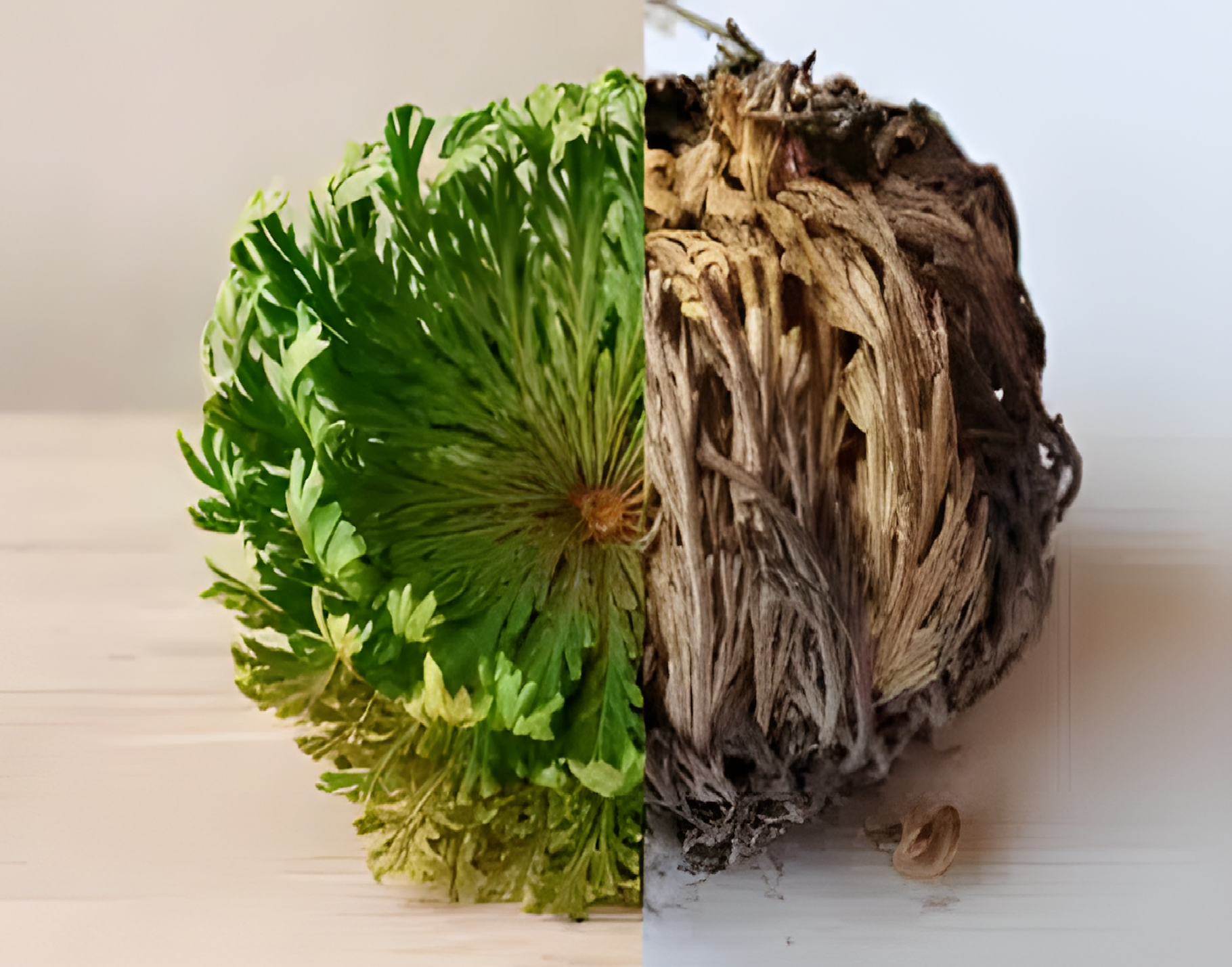 Hij heet Selaginella lepidophylla , maar iedereen kent hem als de opstandingsplant. Als we hem voor het eerst zien, lijkt hij dood: droog, gekruld, grijsachtig. Maar zet hem gewoon in water en je zult een klein wonder zien. Binnen een paar uur gaat hij open, wordt groen en lijkt hij weer tot leven te komen.