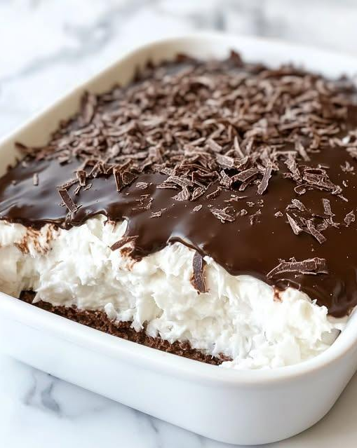 Deze decadente en makkelijke chocolade-kokos taart zonder bakken is een stukje hemel! Het combineert de romige textuur van kokos met de rijke smaak van pure chocolade, en dat alles zonder dat je de oven hoeft aan te zetten. Deze traktatie is perfect voor elke gelegenheid, van een feestje tot een eenvoudige snack voor jezelf. De kokos biedt een subtiele zoetheid, terwijl de chocolade een diepere, intensere smaak toevoegt. Het beste van alles? Het is super eenvoudig te maken en heeft maar een paar ingrediënten nodig!