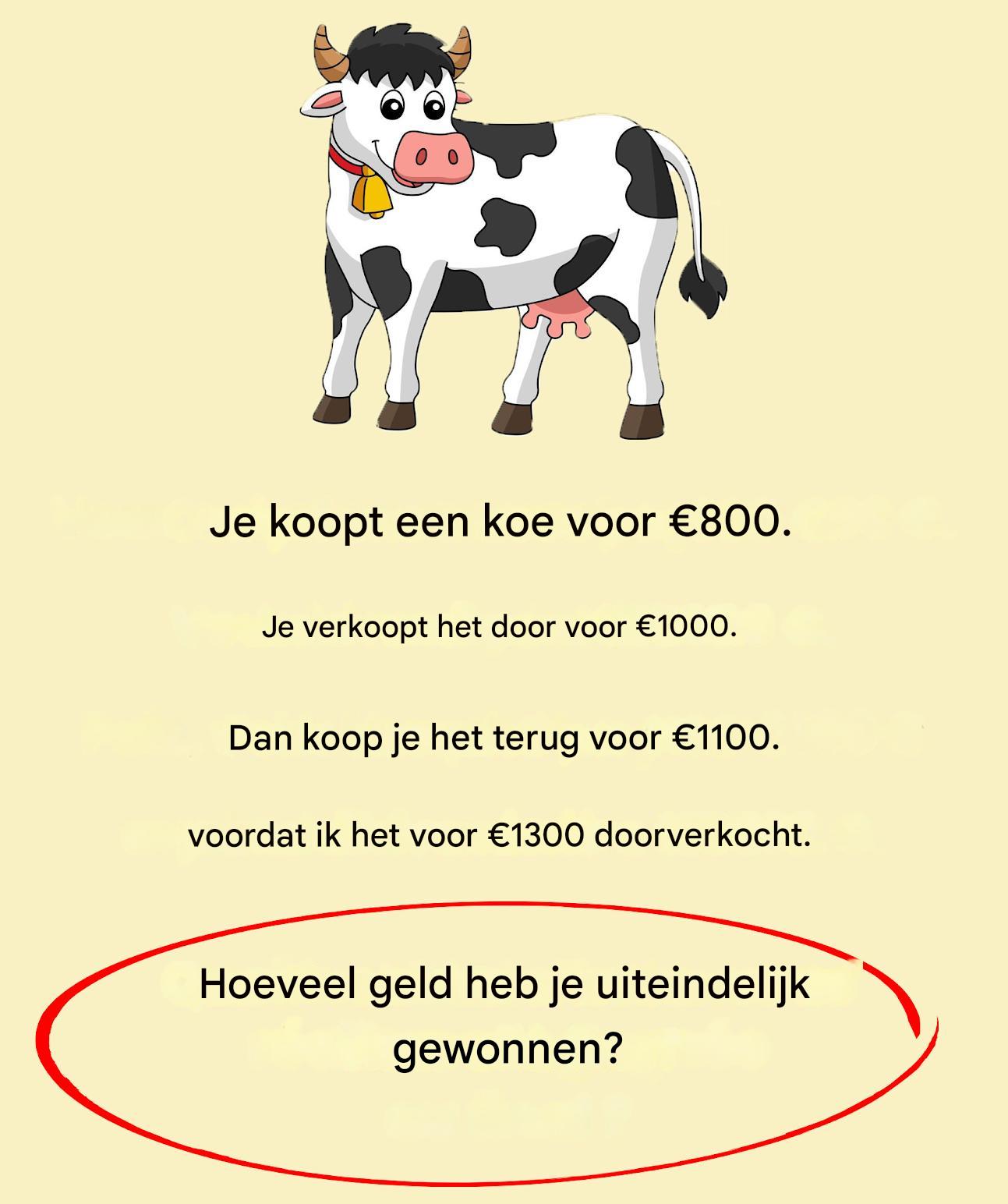 Stel je een simpele scène voor: een koe, een boer en een paar transacties. Niets te ingewikkeld, zou je denken! Toch heeft deze kleine wiskundige puzzel duizenden internetgebruikers voor een raadsel gesteld. Op sociale media draaien rekenmachines op volle toeren, woeden er discussies en verdedigt iedereen zijn eigen theorie. Dus, kun jij ook de totale winst berekenen?