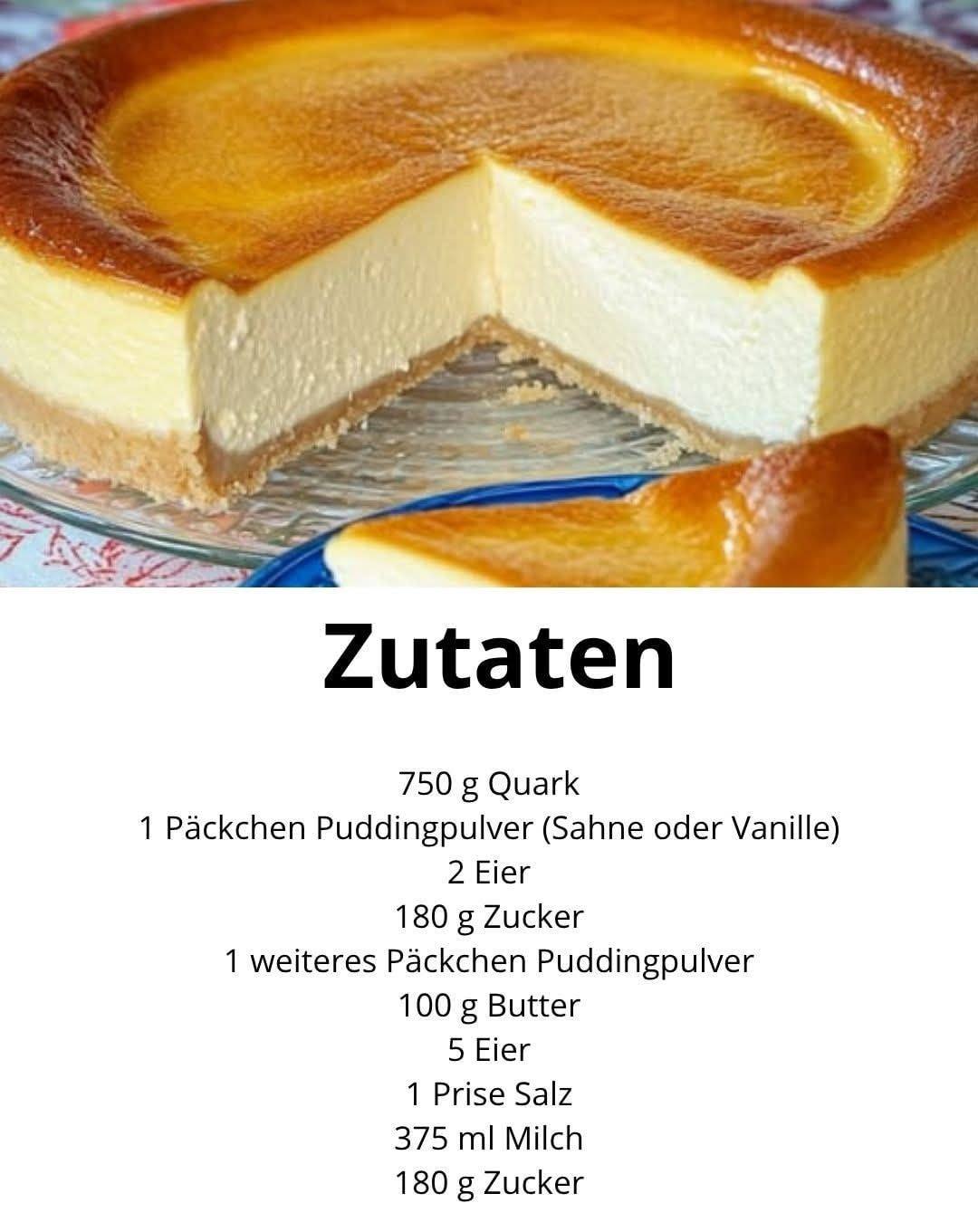De korstloze Eierschecke (een soort Duitse cheesecake) is een traditioneel Oost-Duits recept dat nog steeds verrukt met zijn onweerstaanbare romigheid en delicate vanillearoma. Deze bijzondere cake wordt zonder bodem gemaakt, waardoor hij uitzonderlijk licht, luchtig en smeuïg is. De combinatie van kwark, eieren, boter en vanillepudding zorgt voor een heerlijk zachte textuur die smelt in je mond.