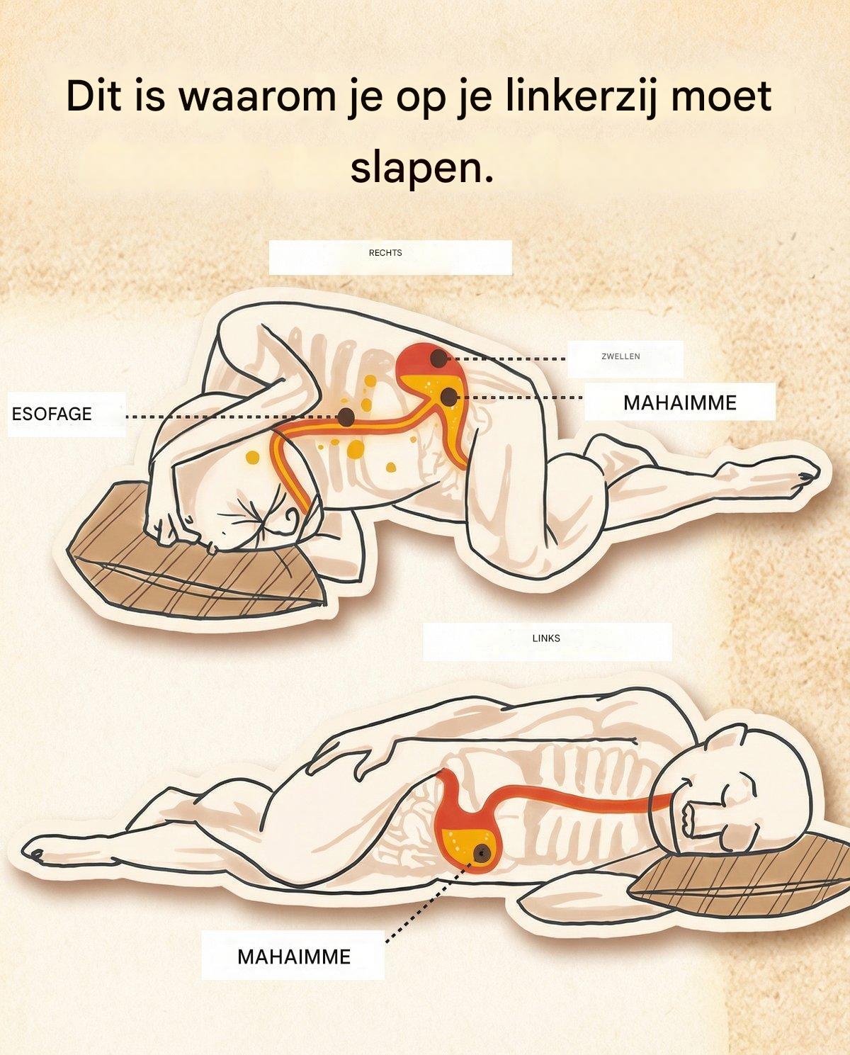 Slapen op de rechterzij kan spijsverteringsproblemen verergeren, terwijl slapen op de linkerzij deze juist kan verbeteren.