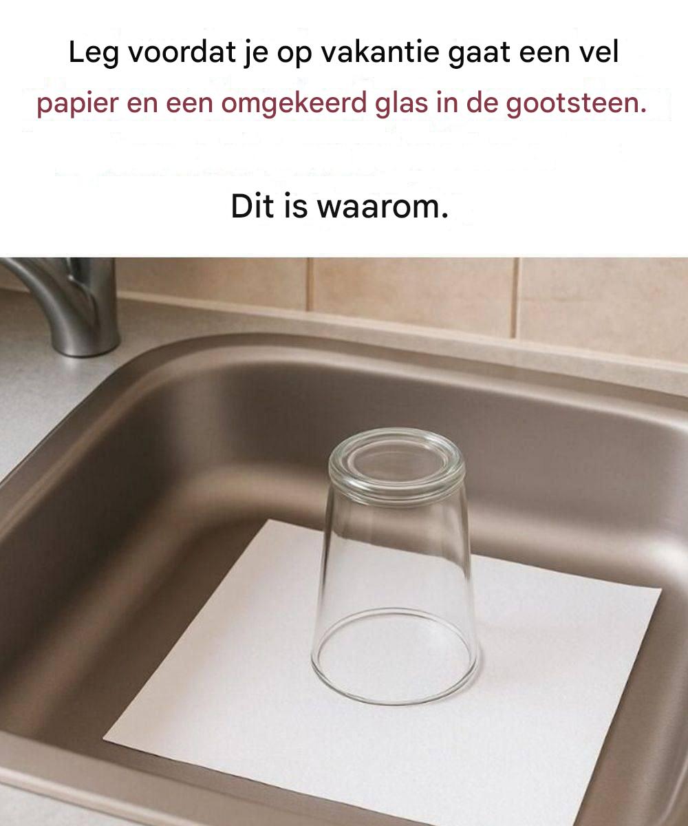 Voordat we op vakantie gaan, zijn we heel nauwkeurig: we draaien de kraan dicht, halen de koelkast leeg en zetten de wekker. Maar één klein detail wordt vaak over het hoofd gezien: de gootsteen.