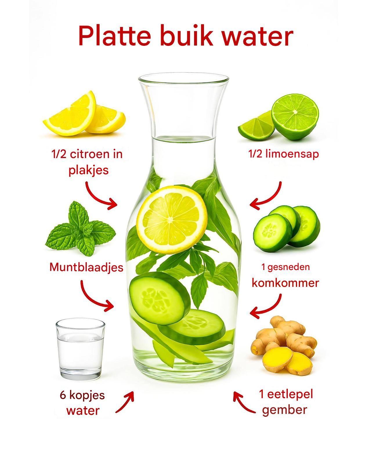 Flat tummy water is in feite een water met een smaakje, gemaakt door fruit, kruiden, groenten en specerijen enkele uren in water te laten weken. Het idee is dat de natuurlijke ingrediënten hun smaken en voedingsstoffen aan het water afgeven, wat resulteert in een smakelijke en gezonde drank die de spijsvertering ondersteunt, de stofwisseling stimuleert en een opgeblazen gevoel helpt verminderen.