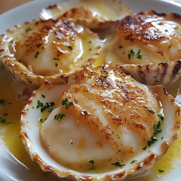 🦪 Gegrilde Coquilles Saint-Jacques met Romige Knoflooksaus 🧄