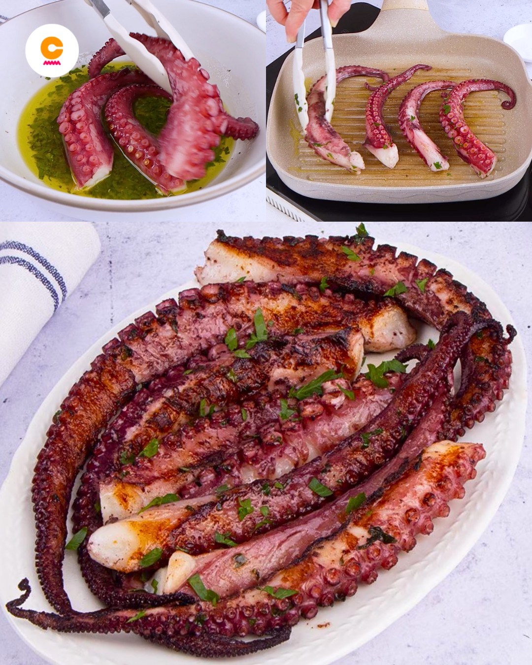 Ons recept is voor gegrilde octopusarmen: van de restjes kun je octopusragout maken of een heerlijke octopus- en aardappelsalade.