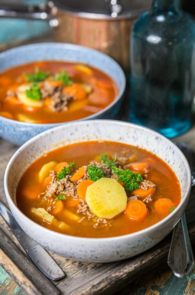 Deze gehaktsoep is een echte familiefavoriet en hoort voor mij helemaal bij knusse, doordeweekse dagen waarop je iets warms en voedzaams wilt eten. We krijgen deze soep meestal voorgeschoteld wanneer we bij mijn schoonmoeder in Floby op bezoek zijn. Toen we er de laatste keer waren, vroeg ik eindelijk om het recept — en het bleek afkomstig te zijn uit haar thuiskunde. Dat verklaart meteen waarom het zo’n eenvoudig, eerlijk en betrouwbaar recept is. Het is precies het soort soep waar je op terugvalt wanneer je weinig tijd hebt, maar toch iets wilt serveren dat iedereen blij maakt.