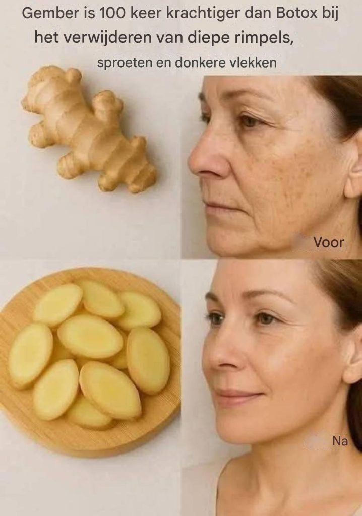 Wist je dat gember, een veelgebruikt ingrediënt in de keuken, een ware krachtpatser is voor een jeugdige en stralende huid? Deze natuurlijke remedie, die al eeuwenlang wordt gebruikt in huidverzorging, is rijk aan antioxidanten die wonderen verrichten bij het verminderen van rimpels, het vervagen van donkere vlekken en het egaliseren van de teint. Het beste nieuws? Je kunt deze voordelen bereiken zonder dat je je toevlucht hoeft te nemen tot botox of dure behandelingen!