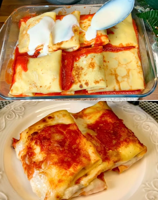 Deze gevulde pannenkoeken zijn een heerlijk voorgerecht dat gegarandeerd indruk maakt op je gasten. De combinatie van zachte pannenkoeken, romige ricotta en smaakvolle ham, afgemaakt met een beetje Grana Padano, maakt dit gerecht onweerstaanbaar. Perfect voor een gezellig diner of een feestelijke gelegenheid!