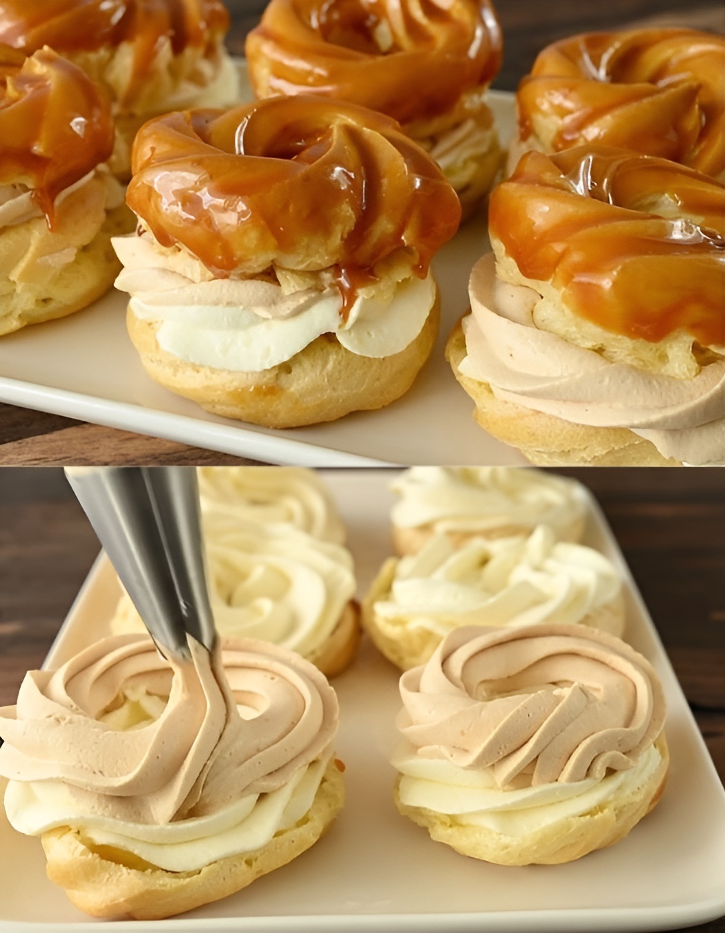 Hier is het recept voor deze heerlijke Soesjes met Karamel- en Vanilleroom: