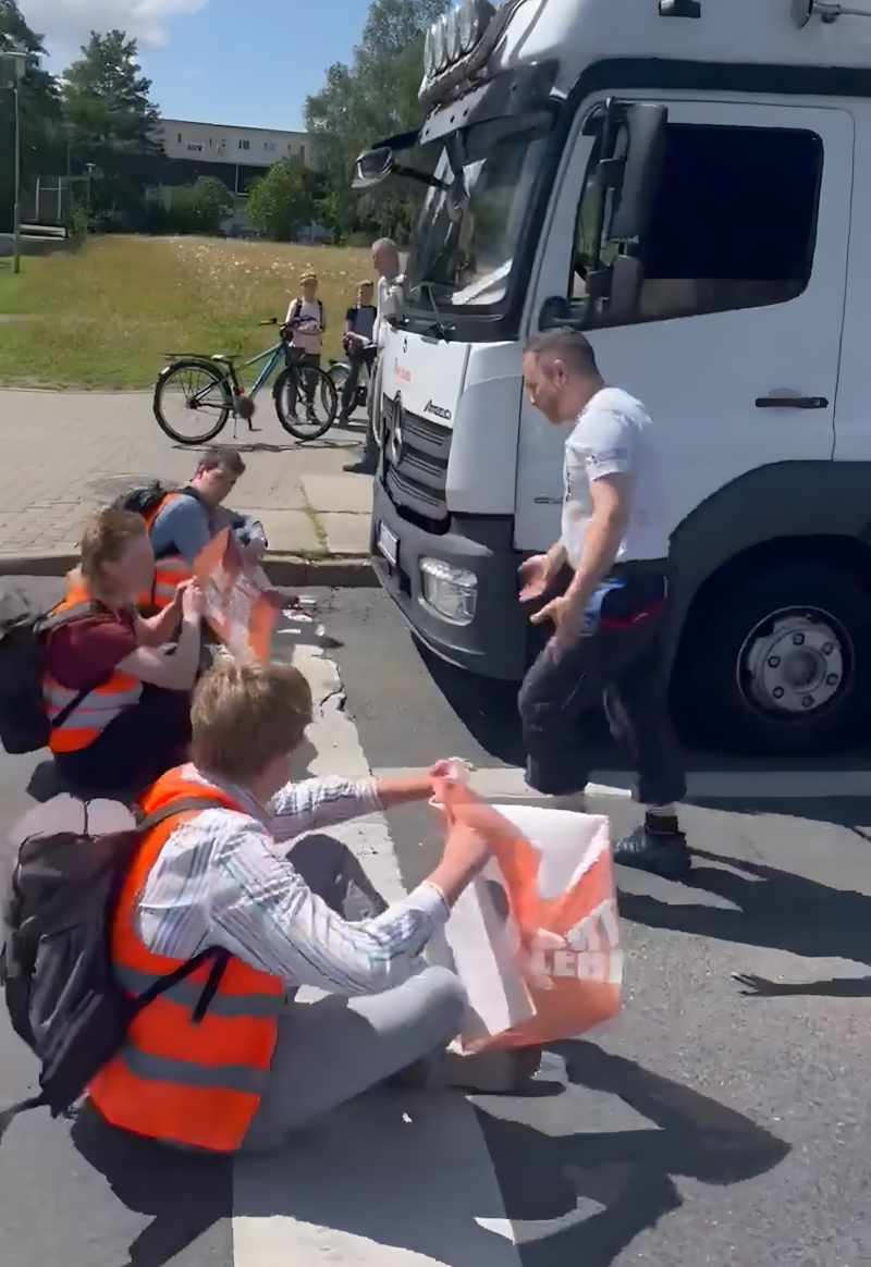 De beelden laten een gespannen confrontatie zien tussen de vrachtwagenchauffeur en de activisten. De chauffeur, geplaagd door de gevolgen van vertraging en vermoeidheid, toonde een ongewoon agressieve houding. Zijn handelingen waren niet alleen fysiek intimiderend, maar ook angstaanjagend voor de activisten, die overweldigd werden door de onverwachte uitbarsting van woede.