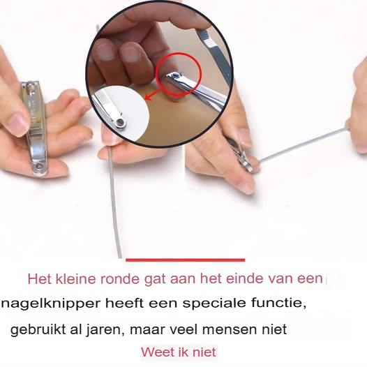 Het kleine ronde gaatje aan het uiteinde van een nagelknipper