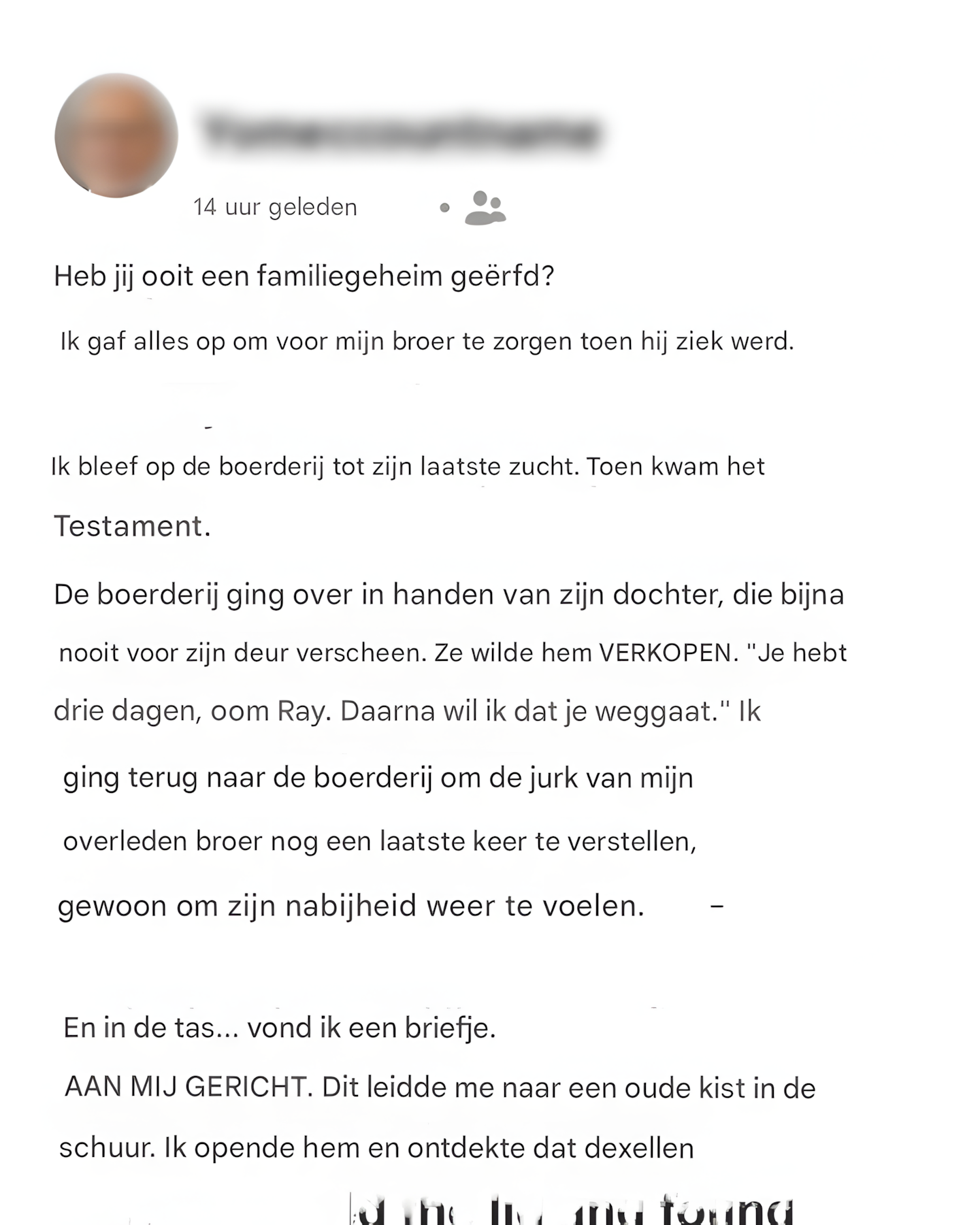 Maar ik had het mis. De echte klap kwam later, toen ik een brief ontdekte die verborgen lag in zijn oude schuur, met daarin een waarheid die niemand ooit had durven onthullen.