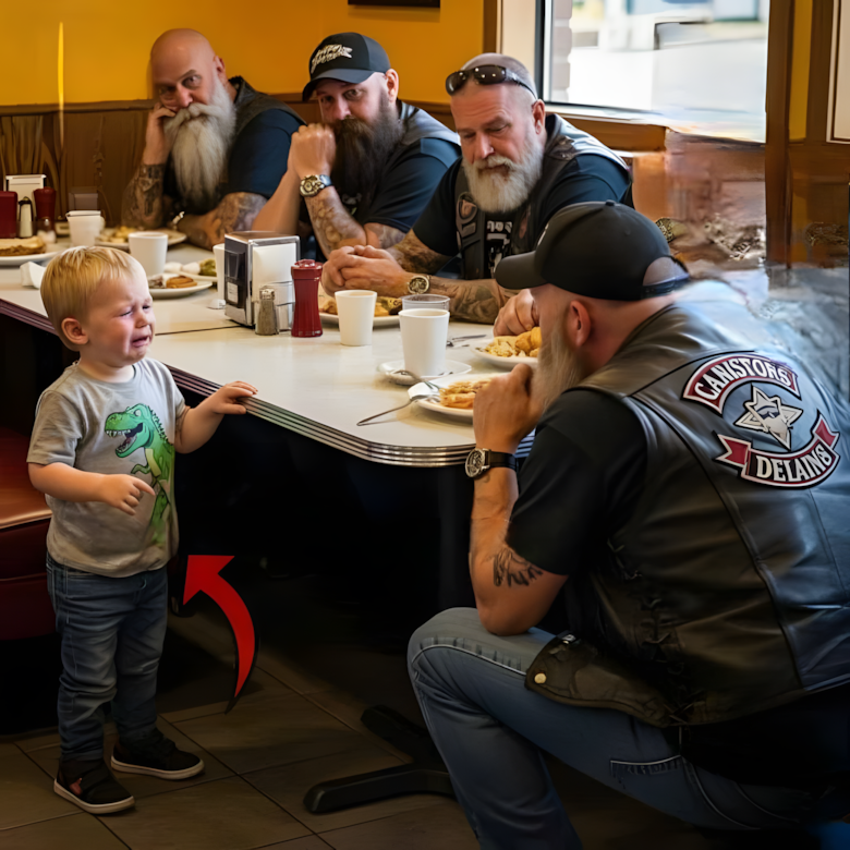 Stilte verspreidde zich door de kamer. De vorken verstomden in de lucht. Gesprekken vielen stil. De bikers staarden naar het kind dat hen net om hulp had gevraagd alsof het de normaalste zaak van de wereld was.