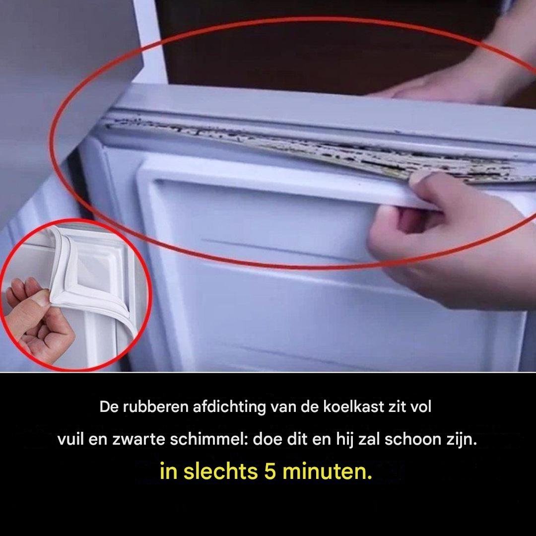 Die kleine, flexibele afdichting rond de deur is niet alleen decoratief. Hij zorgt ervoor dat de koelkast luchtdicht is, waardoor koude lucht niet kan ontsnappen en warme lucht niet naar binnen kan. Maar door het herhaaldelijk openen en sluiten wordt het een broedplaats voor stof, kruimels, etensresten… en zelfs schimmel . Het resultaat? Onaangename geuren , een verminderde luchtdichtheid en een hoger energieverbruik . Gelukkig zijn er maar een paar simpele stappen nodig om dit allemaal te voorkomen.