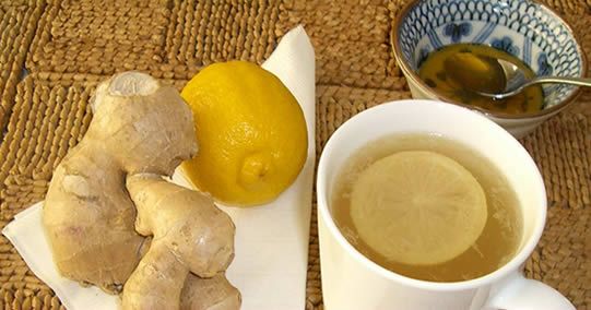 Ingrediënten: een halve eetlepel geraspte gember, 250 ml water, een eetlepel biologische honing en het sap van een halve citroen.