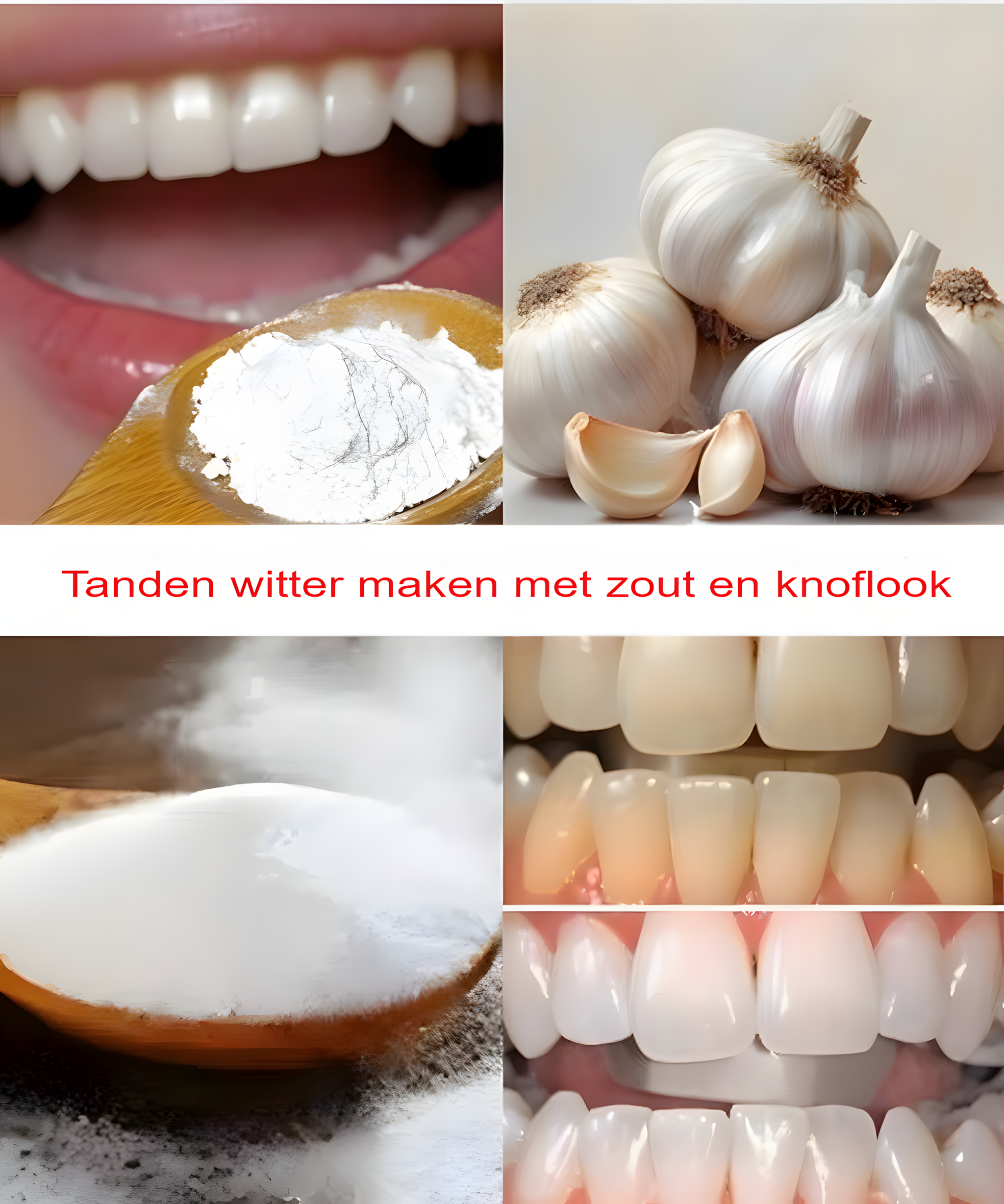 knoflook bevat allicine, een natuurlijke stof met antimicrobiële eigenschappen die bacteriën helpt elimineren die tandplak en verkleuring veroorzaken. Zout daarentegen werkt als een mild schuurmiddel en reinigt de tanden zonder het glazuur te beschadigen.