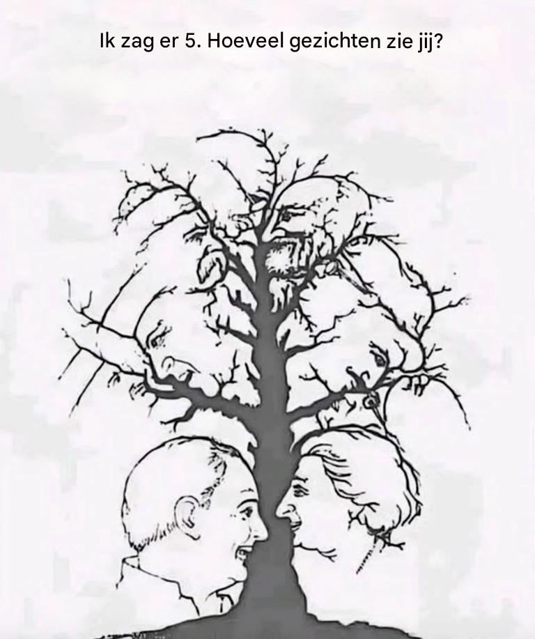 Velen van ons waarderen deze kleine, alledaagse puzzels die onze blik prikkelen. Maar bij het zien van deze afbeelding van een nogal ongewone boom aarzelen zelfs de meest oplettende kijker even. Op het eerste gezicht zijn twee profielen duidelijk zichtbaar aan de voet van de stam. Niets ingewikkelds. Dan wordt het complexer: andere gezichten, veel discreter, lijken op te gaan in de takken alsof ze verstoppertje spelen.
