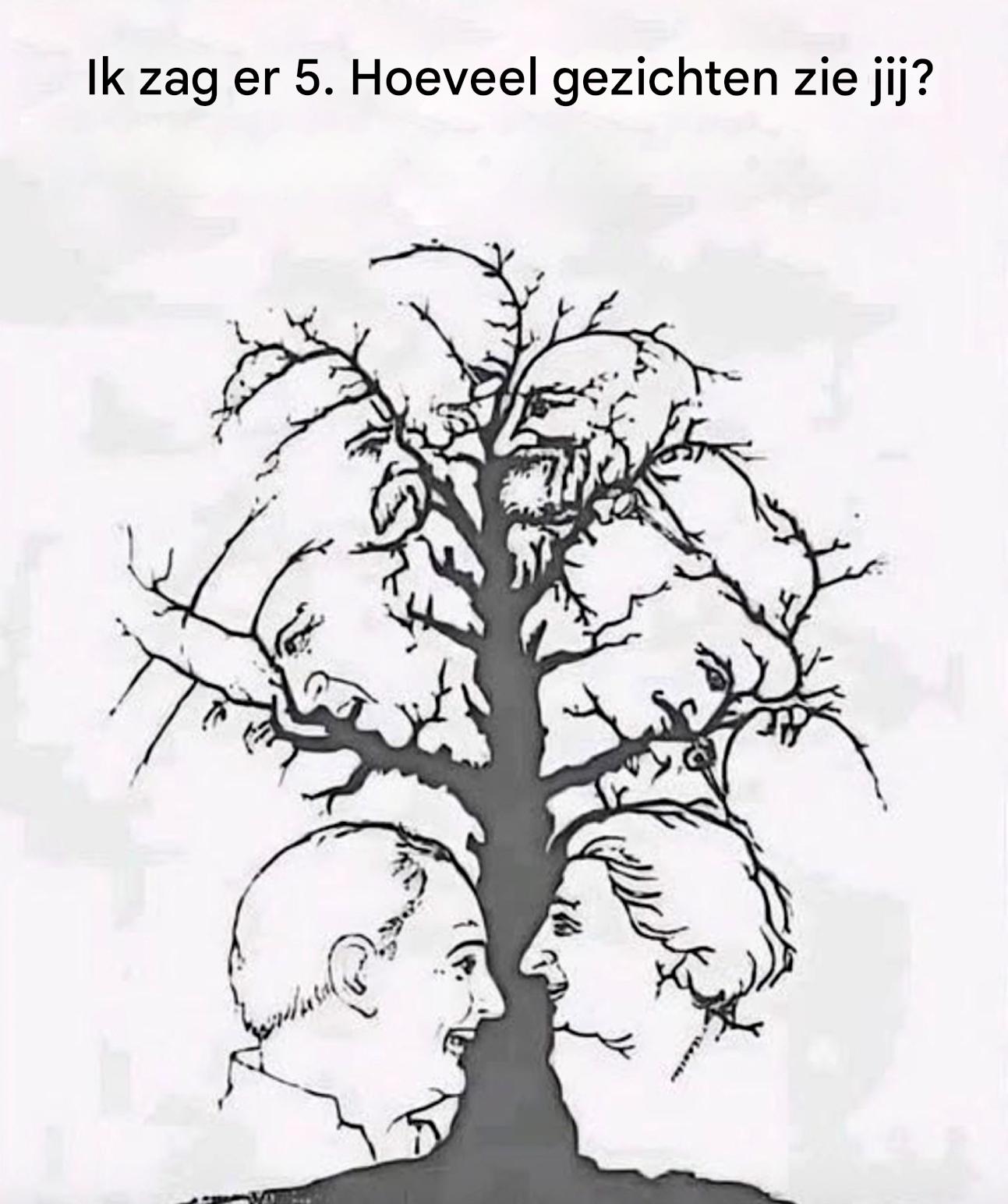 Velen van ons waarderen deze kleine, alledaagse puzzels die onze blik prikkelen. Maar bij het zien van deze afbeelding van een nogal ongewone boom aarzelen zelfs de meest oplettende kijker even. Op het eerste gezicht zijn twee profielen duidelijk zichtbaar aan de voet van de stam. Niets ingewikkelds. Dan wordt het complexer: andere, veel subtielere gezichten lijken op te gaan in de takken, alsof ze verstoppertje spelen.