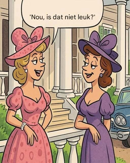 De tweede dame glimlachte beleefd en antwoordde in haar zachte tongval: « Nou, is dat niet leuk? »