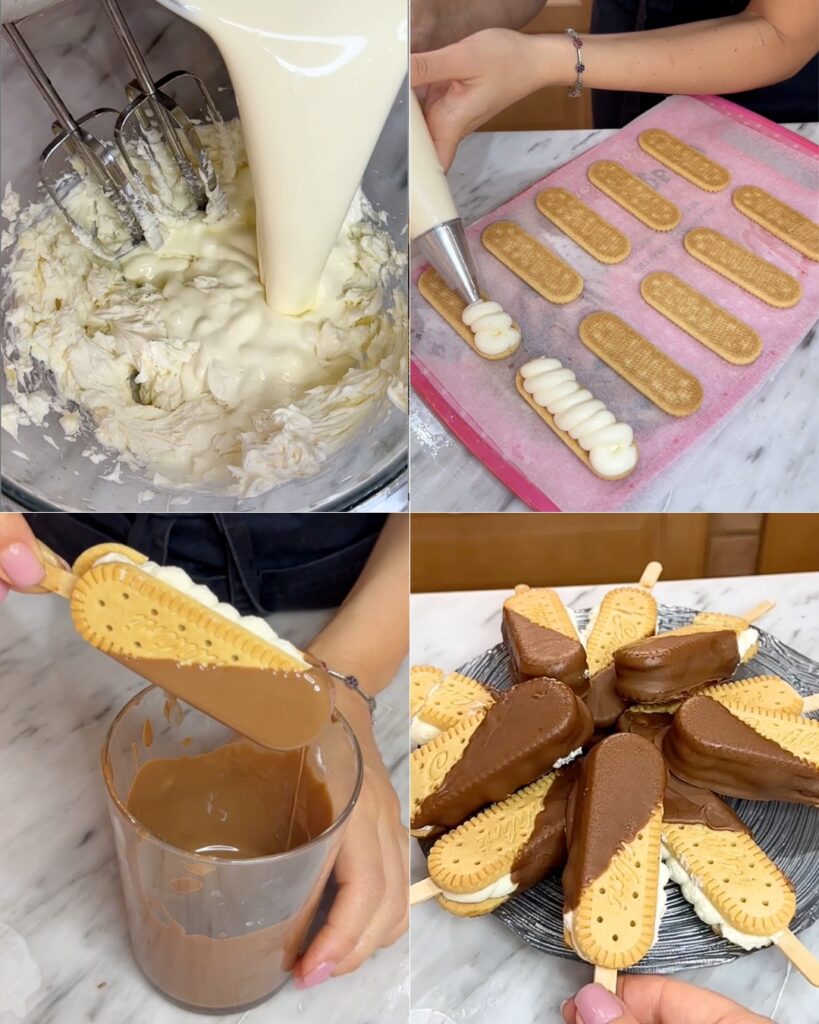 Maak je klaar voor een verfrissende zomerse traktatie: ijskoekjes op een stokje! Deze heerlijke snack combineert knapperige koekjes, een romige mascarponevulling en een laagje gesmolten chocolade. Ideaal voor warme dagen en perfect voor jong en oud.
