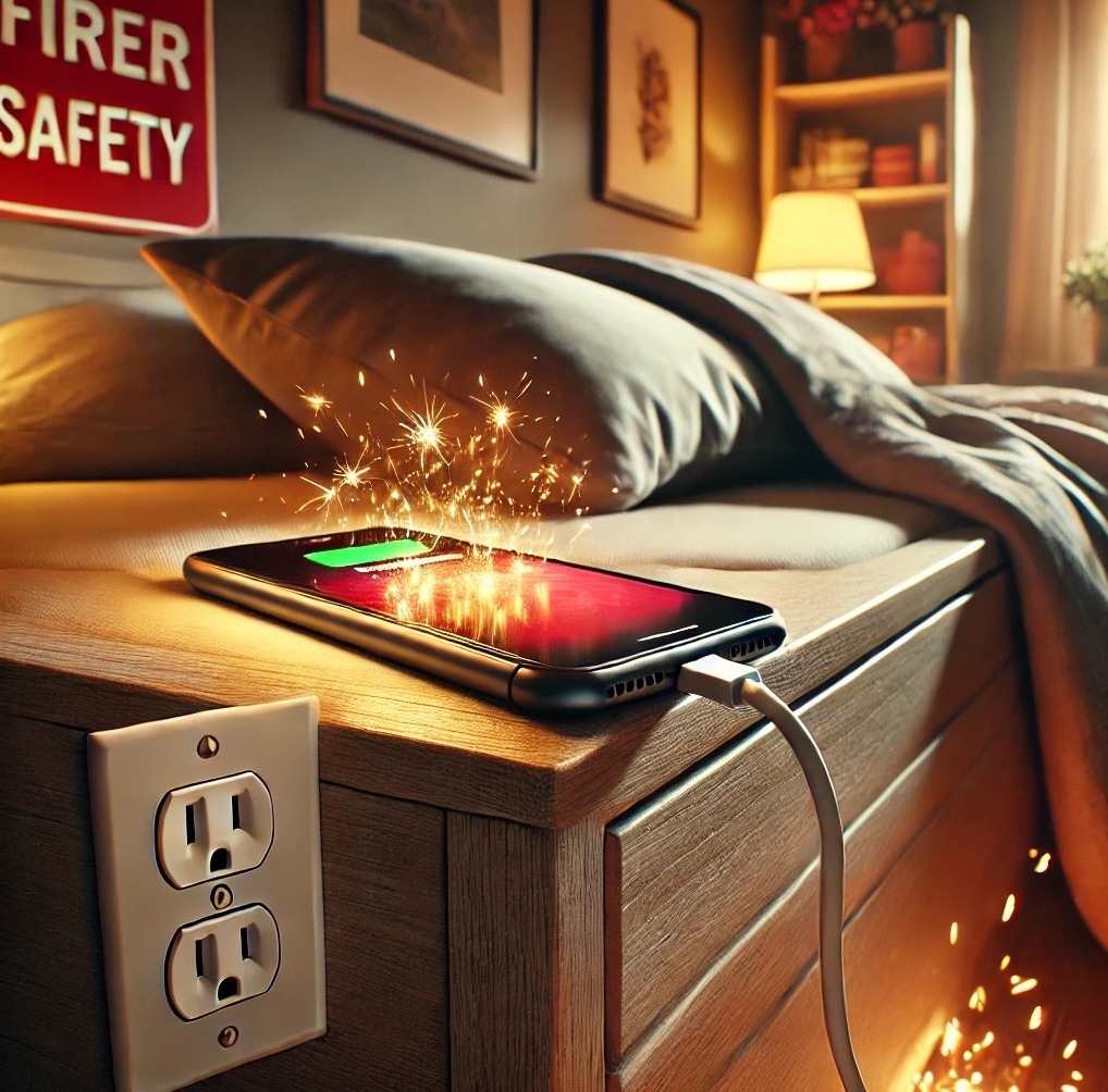 Het opladen van apparaten, met name smartphones, omvat de overdracht van elektrische energie, wat warmte kan genereren. Indien deze warmte niet goed wordt afgevoerd, kan dit leiden tot oververhitting, beschadiging van de batterij of zelfs brand. Het risico wordt vergroot door het gebruik van opladers van lage kwaliteit, beschadigde kabels of opladen in omgevingen die geen goede warmteafvoer mogelijk maken. Bovendien zijn lithium-ionbatterijen, die veelvuldig in smartphones worden gebruikt, gevoelig voor extreme temperaturen en kunnen ze ontploffen als ze overladen of fysiek beschadigd raken.