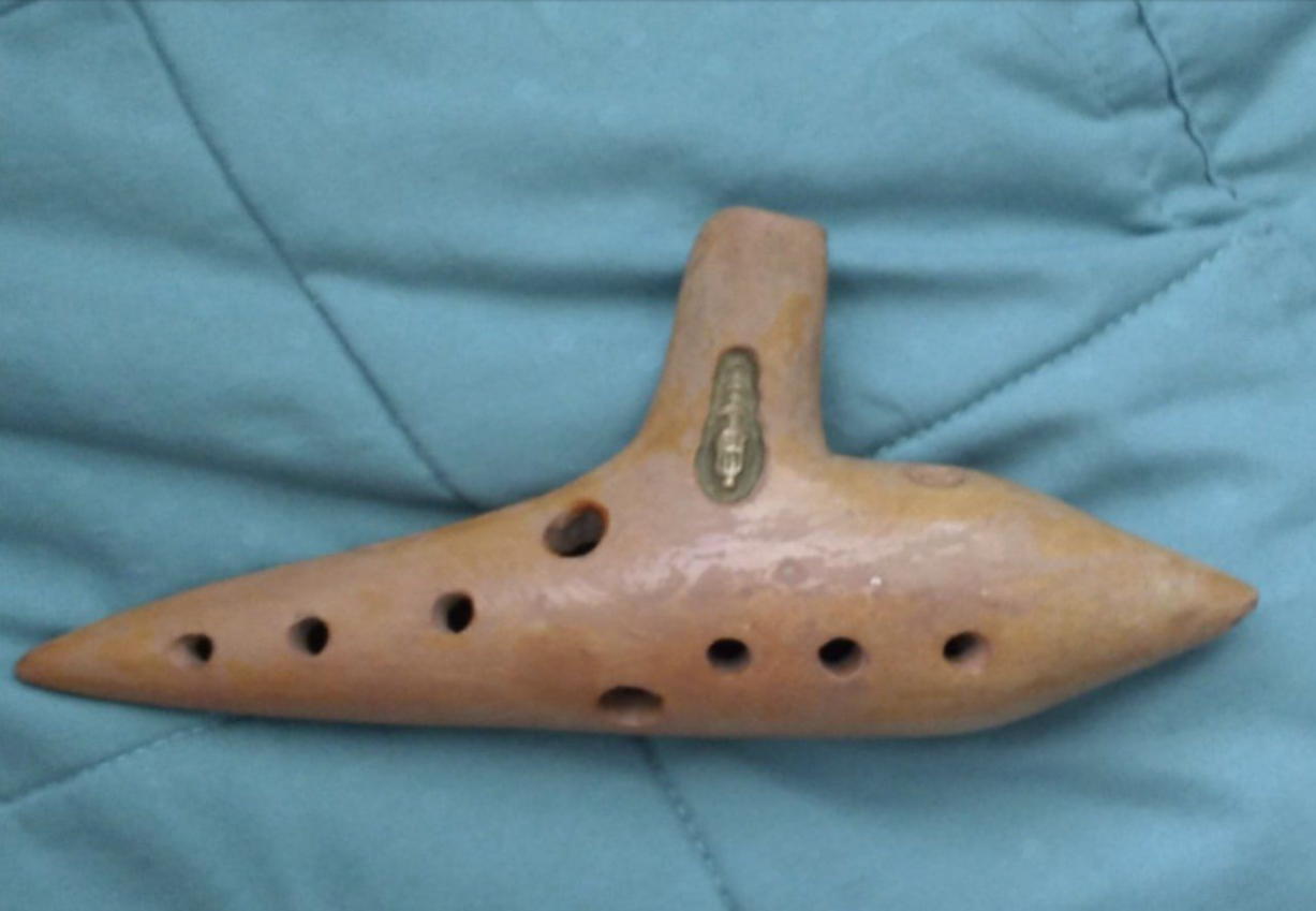 Een vreemd, onderzeeërvormig keramisch voorwerp – iets tussen een fluitje en een aardappel in . Ik pakte het op, draaide het om, en daar was het: