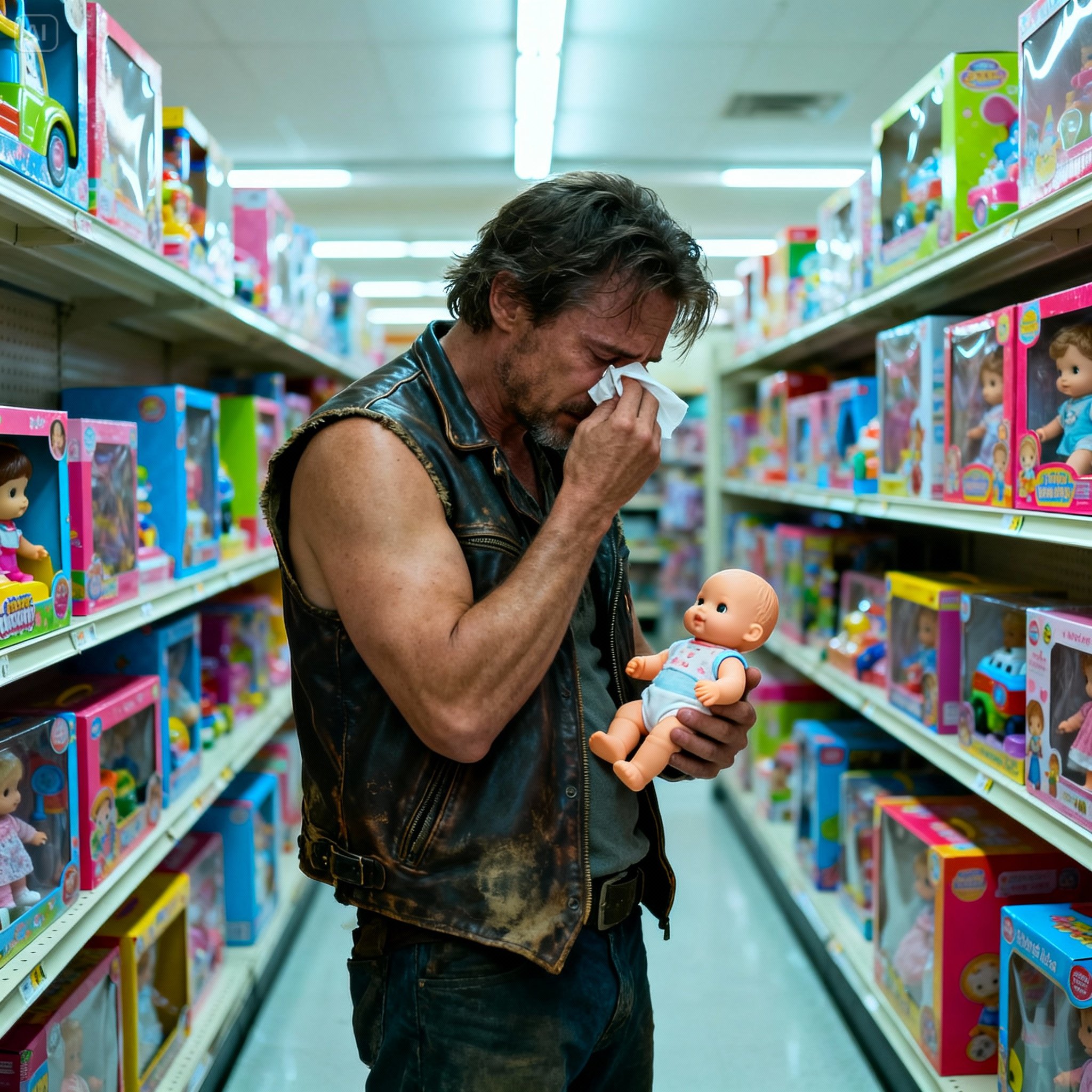 En ik? Die dag in de speelgoedwinkel leerde ik de belangrijkste les van mijn leven: verdriet ziet er niet uit zoals we verwachten. Soms ziet het eruit als een enge motorrijder die een roze poppenhuis koopt. Soms dragen helden leer in plaats van capes.
