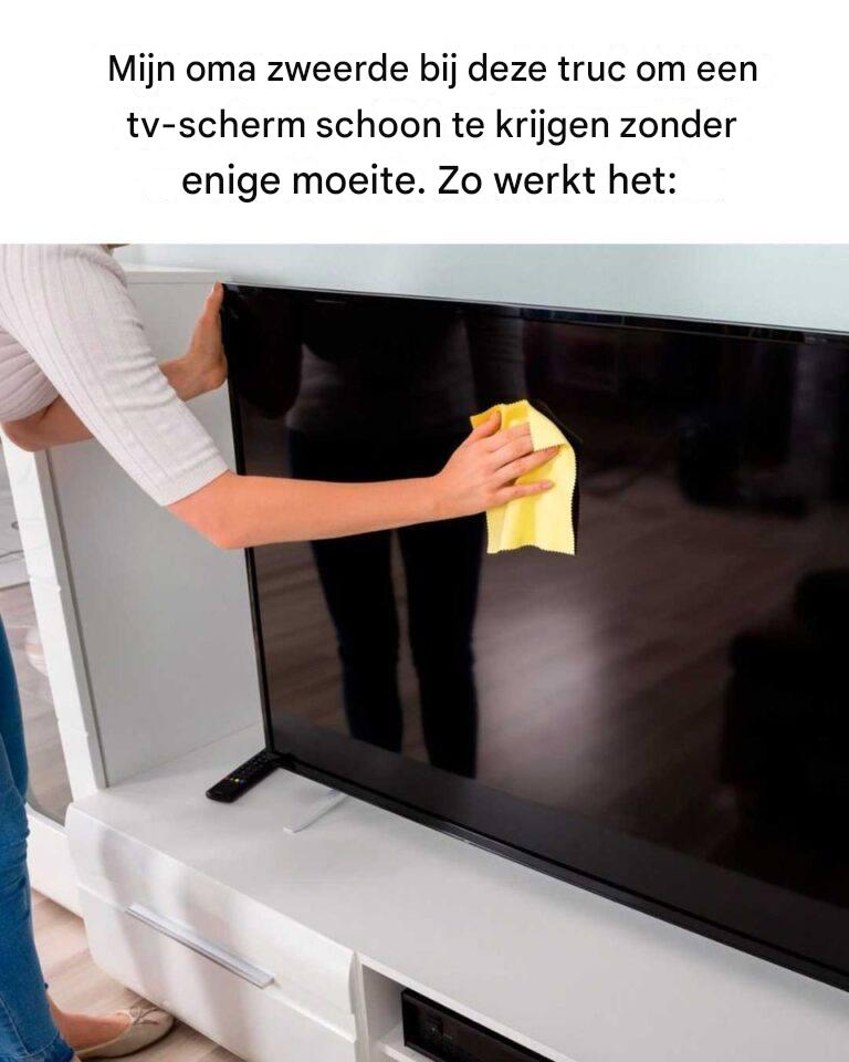 Mijn oma, bekend om haar smetteloze huis en innovatieve schoonmaaktrucs, maakte alledaagse klusjes makkelijk. Haar geheim voor het schoonmaken van tv-schermen werd van generatie op generatie doorgegeven en door de jaren heen beproefd. Ze zweerde bij een specifieke combinatie van huishoudelijke producten die wonderen verrichtten zonder hard te hoeven schrobben of bang te hoeven zijn voor beschadiging.