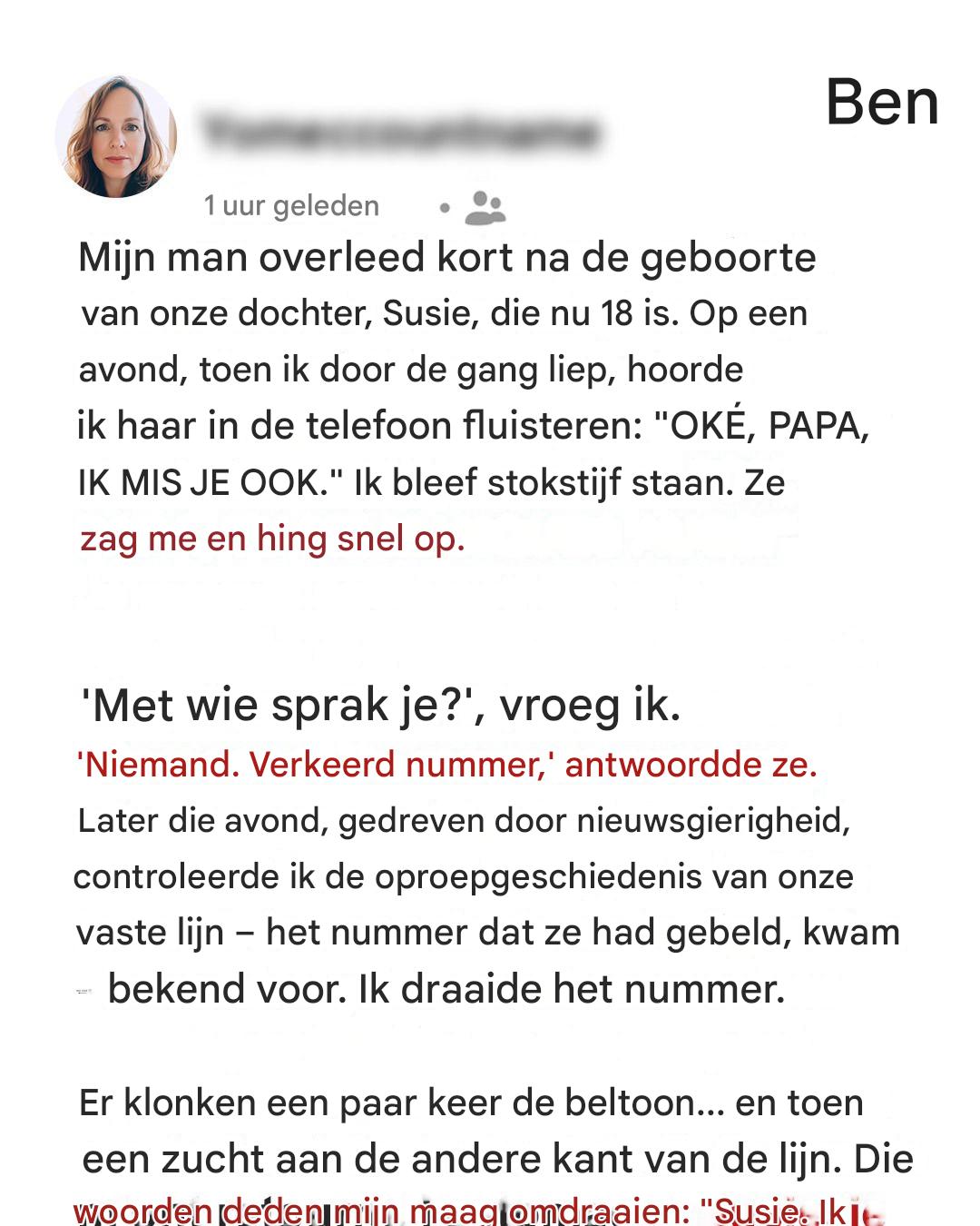 Ik hoorde mijn dochter fluisteren: « Ik mis je, papa » aan de telefoon – ik heb haar vader 18 jaar geleden begraven.