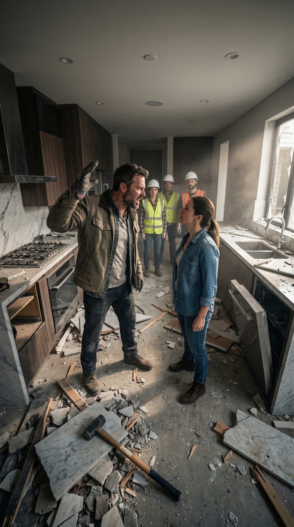 Ik kwam vroeg thuis van mijn werk en trof mijn stiefvader aan die mijn gloednieuwe keuken aan het slopen was, terwijl de bouwvakkers van mijn zus mijn op maat gemaakte keukenkasten aan het verwijderen waren. Toen ik eiste dat ze stopten, sloeg hij me midden in mijn woonkamer, en ze gingen gewoon door met boren alsof ik er niet eens was. Wat er daarna gebeurde? Laten we zeggen dat ze het niet zagen aankomen. Tegen de tijd dat ik klaar was, waren ze niet alleen de toegang tot mijn huis kwijt – en die video waarop hij me slaat? Die ging viraal op plekken die ze zich nooit hadden kunnen voorstellen.