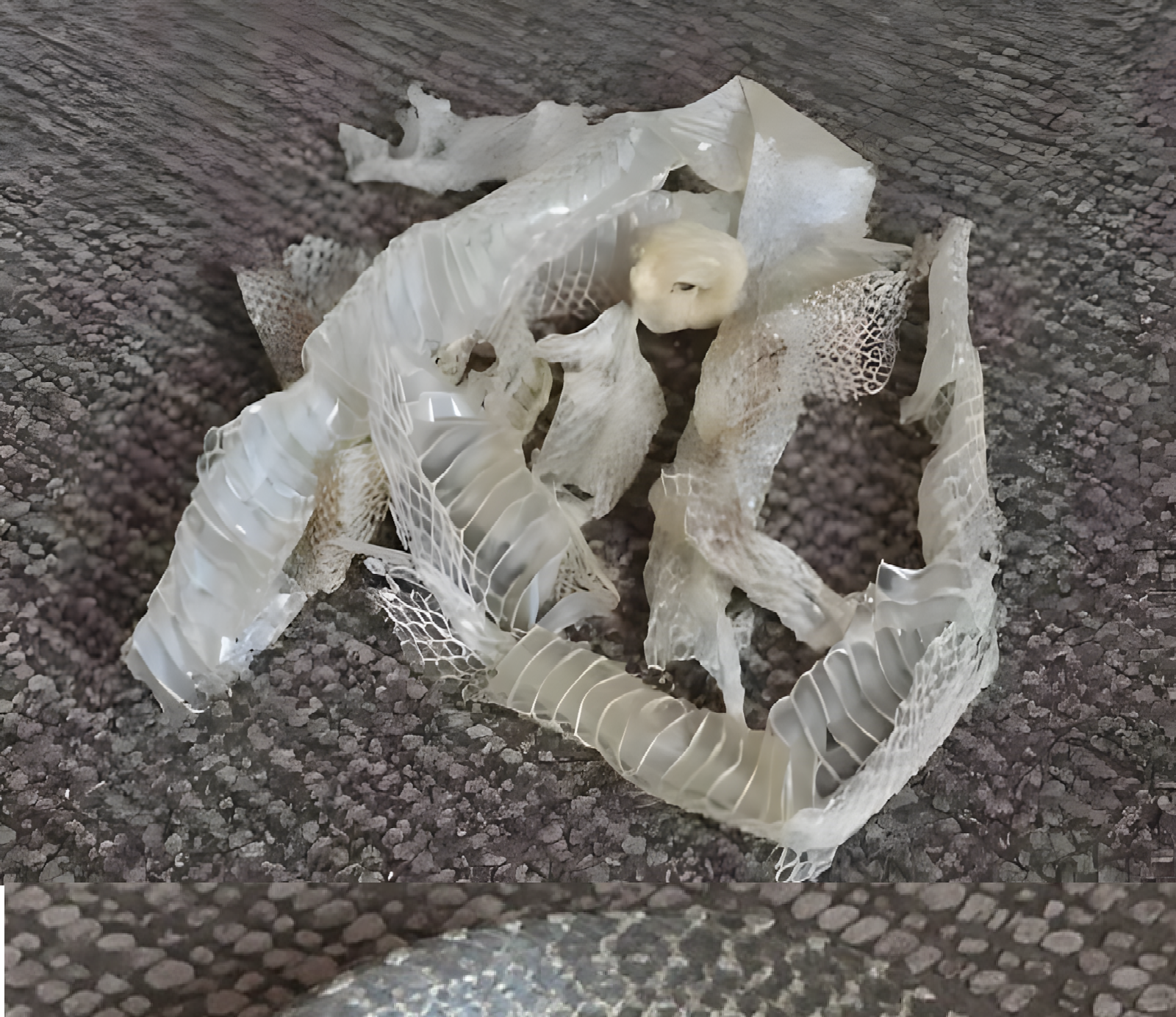 Op de zevende dag vond ik weer een stukje van dat vreemde “lint”. Deze keer achter de commode in de kinderkamer. Hetzelfde zachte, halfdoorzichtige materiaal. Ik begon informatie op internet te zoeken. Het was… slangenhuid.